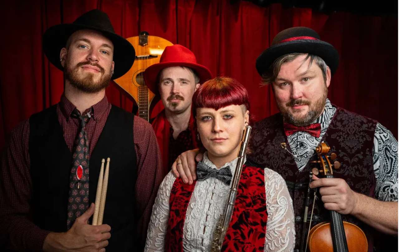 On Saturday, March 4th, we’re honored to welcome two outstanding bands to the Great Hall for a full evening of music and merriment. Making their Fae Nectar debut, WICKED WINE storms our stage with high-energy violin shredding, dark carnival flair, and cabaret-infused rock ’n’ roll. Their theatrical edge and electrifying sound promise a performance as bold and enchanted as the Tavern itself.